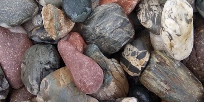 Окатанные водой горных рек камни размером от 20 см. называют валунами, чуть меньших размеров – валунчиками. Они бывают разного цвета, в зависимости от преобладающих минералов – белые, голубоватые, розовые, светло- или темно-серые, с прожилками и т.д.